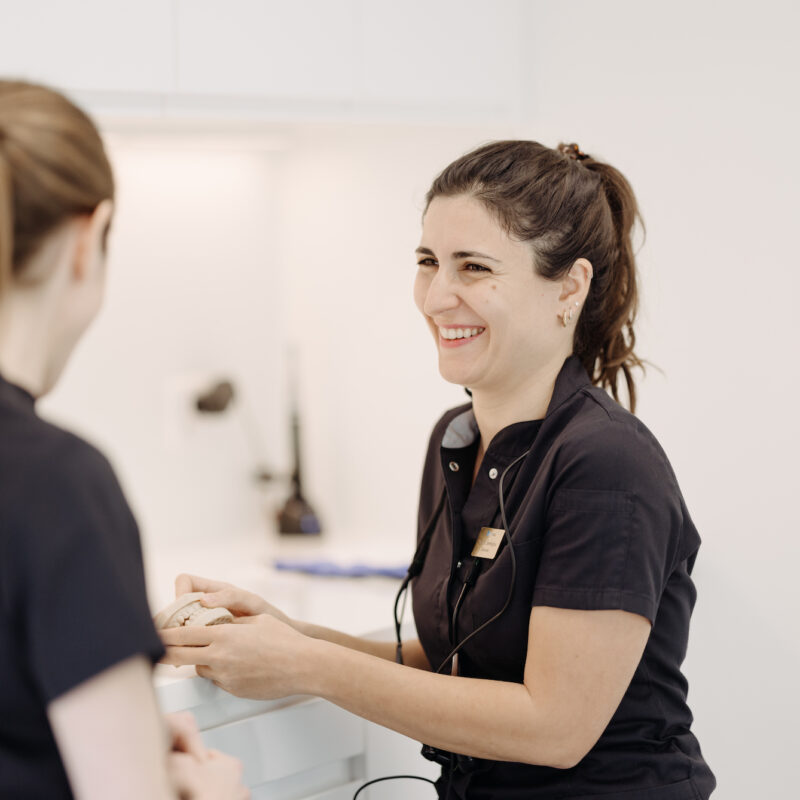 Während nur einer Sitzung werden die Zähne intensiv aufgehellt bis die gewünschte Nuance erreicht ist. Das Zahnfleisch wird mittels einer Spezialmaske abgedeckt und das Aufhellungsgel mehrfach frisch auf die Zahnoberflächen aufgetragen. Der Vorgang wird wiederholt bis die gewünschte Zahnfarbe erreicht ist. Für den genauen Vergleich erstellen wir Bilder vor und nach der Behandlung.